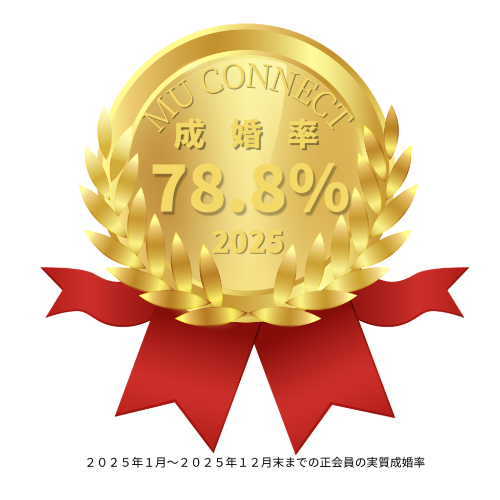 ミューコネクトでは、2025年1月から12月までの1年間で**成婚率78.8%**を達成しました。前年比9.6%UP