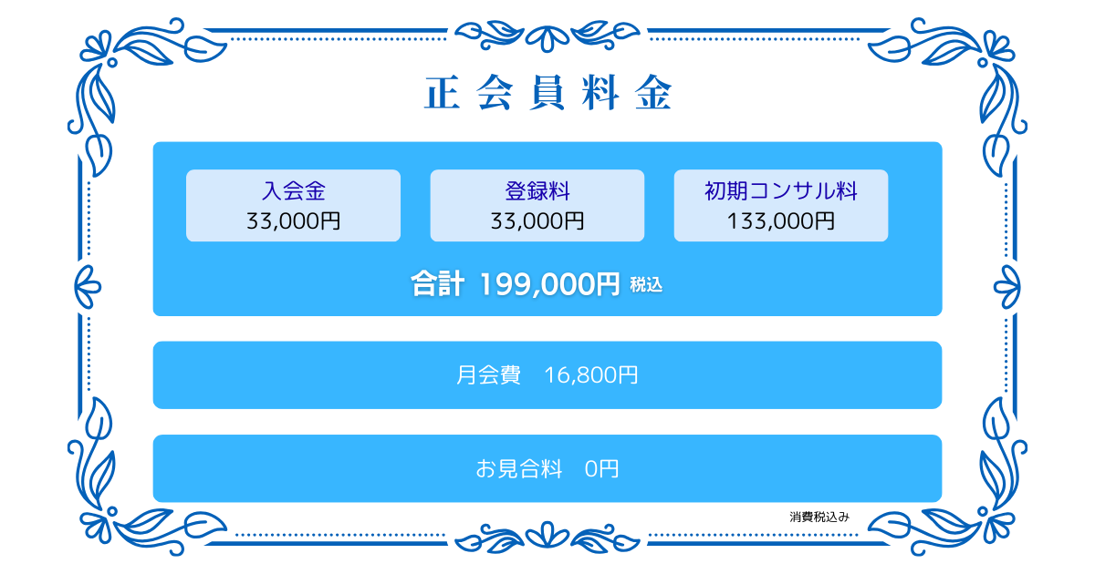 ご成婚退会時に220,000円(税込)をお支払いいただきます。