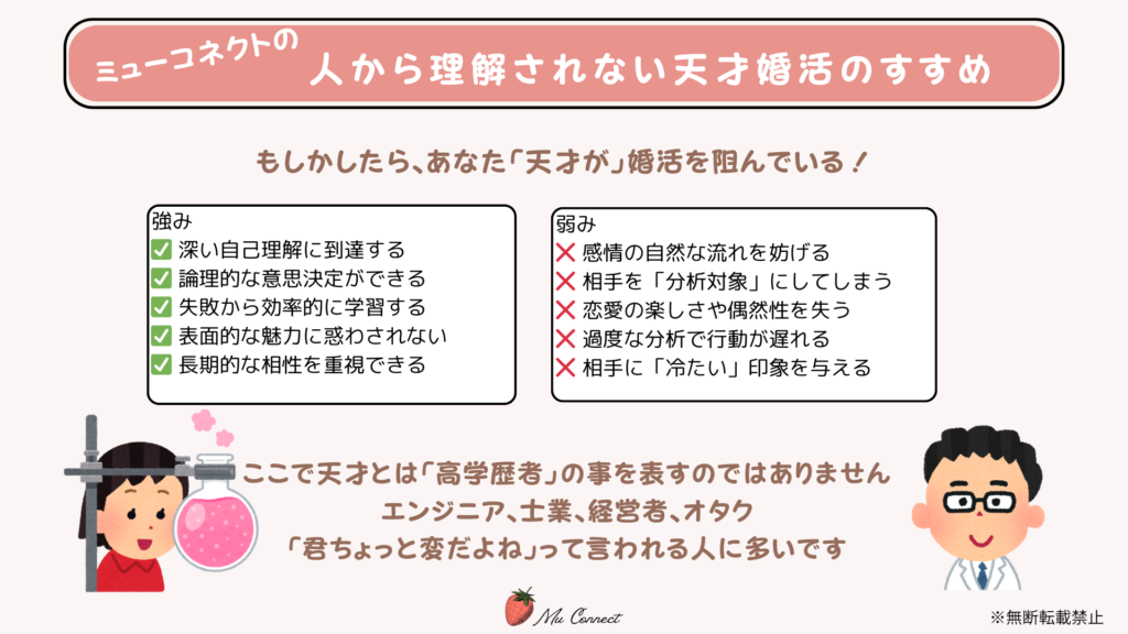 結婚相談所ミューコネクトを運営する中で、私は興味深い現象に気づきました。会員の多くが高学歴・理系出身者であり、「恋愛感情が理解できない」という共通の課題を抱えていたのです。
