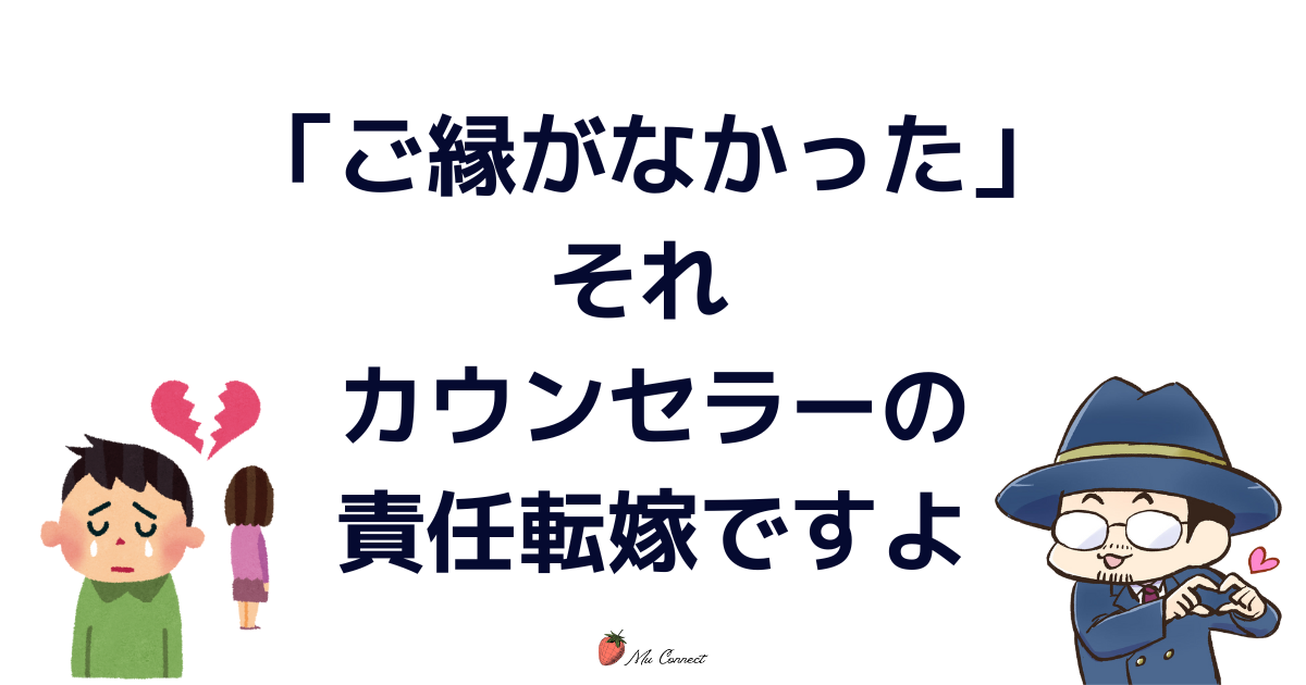 一見、中立的で配慮ある言葉です。しかし実態は、【仲人側の戦略設計ミスを、会員の”運”や”相性”という不可抗力に転嫁している】だけです。