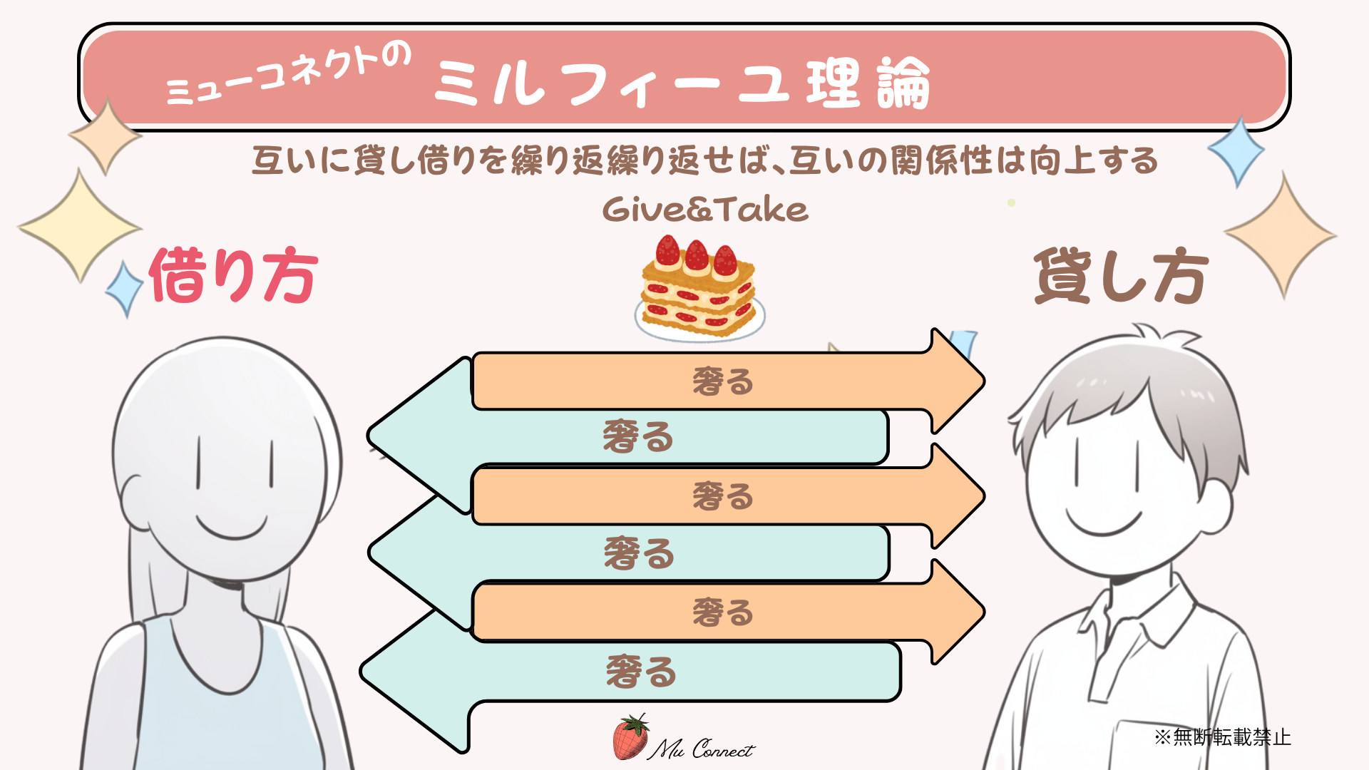 ミューコネクトでは、交際に入った場合、互いの関係性を作るためには「ミルフィーユ理論」を勧めています。