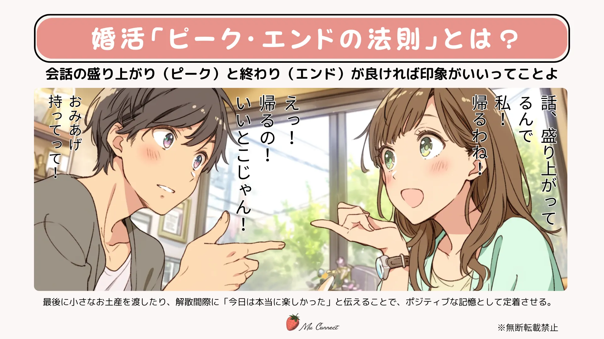 - 初デートは1〜2時間で切り上げる – ピーク・エンドの法則で好印象を残す